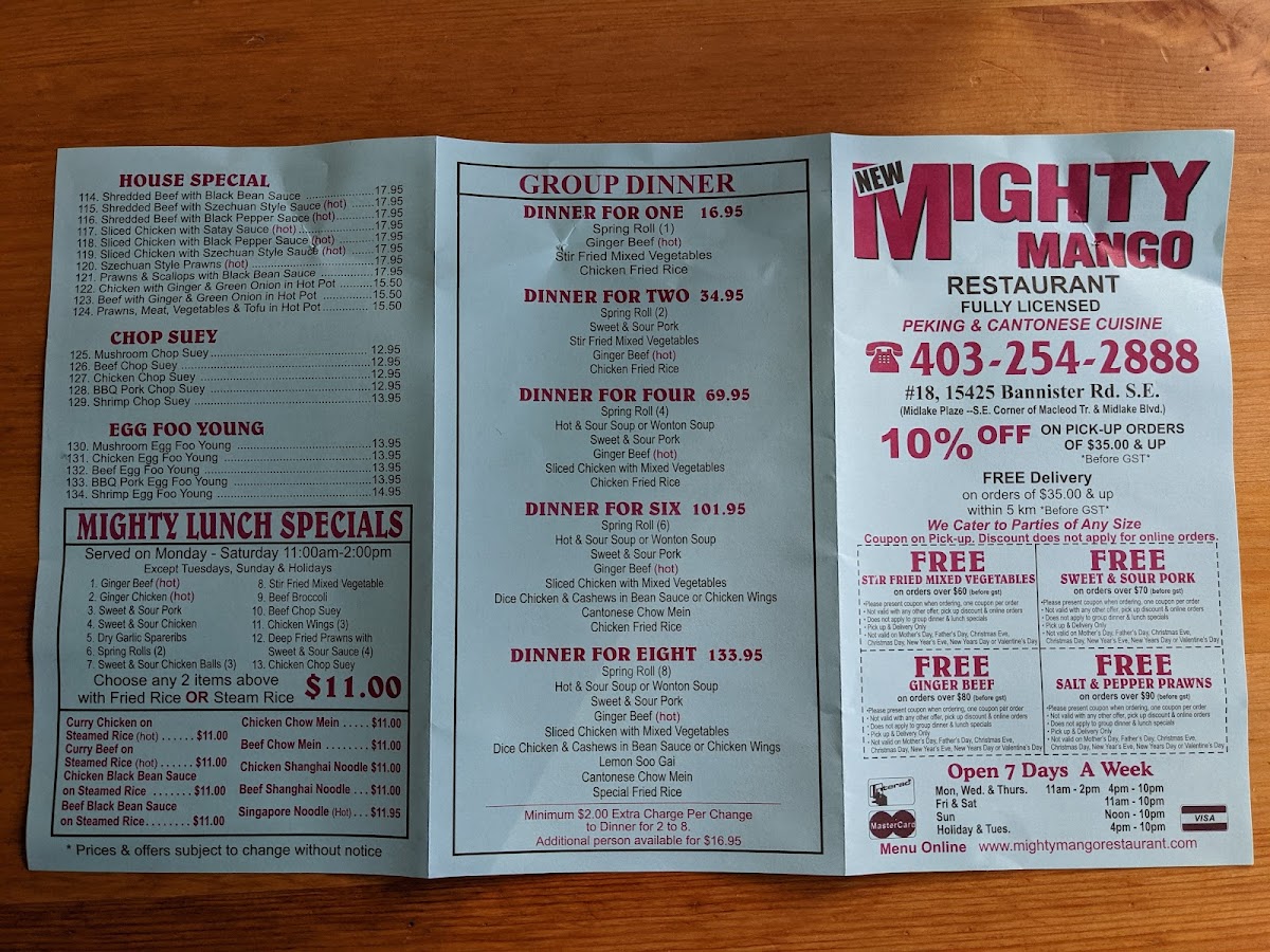 At Mighty Mango Restaurant Ltd, the vibrant flavors of the tropics come alive with every bite. Nestled in the heart of Calgary, this spot offers a menu brimming with fresh, flavorful dishes that transport you straight to sunny, exotic locales. Whether you’re in the mood for a zesty mango chicken salad or craving a rich, hearty curry, the variety here ensures there’s something for everyone. The tropical fruit-inspired offerings, especially the refreshing mango-based drinks and desserts, pair perfectly with the restaurant’s bold, flavorful dishes. Each plate is crafted with the finest ingredients, bringing the taste of the tropics to your table. From savory entrees to sweet treats, dining at Mighty Mango is an experience that delights the senses and leaves you craving more.